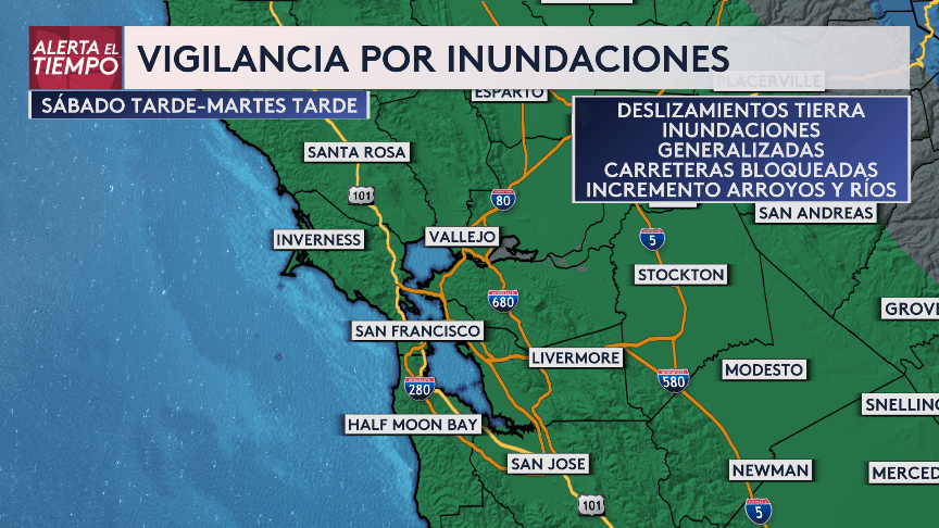 Permanecerán los nublados con numerosas lluvias durante el sábado y el domingo. Vientos de región sur con velocidades entre 15 y 25 mph, rachas de hasta 50 mph hacia los valles, siendo superiores en zonas montañosas. Posibles inundaciones, deslizamientos de tierra, incremento del nivel de arroyos y ríos, además de caída de árboles y apagones.