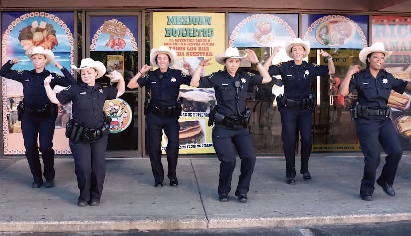 Acto seguido y a lo largo de más de cuatro minutos se observan al igual escenas de policías jugando futbol en un parque, que bailando una coreografía frente a las oficinas de la corporación y agentes con sombreros moviéndose al ritmo de la música encima de sus patrullas.