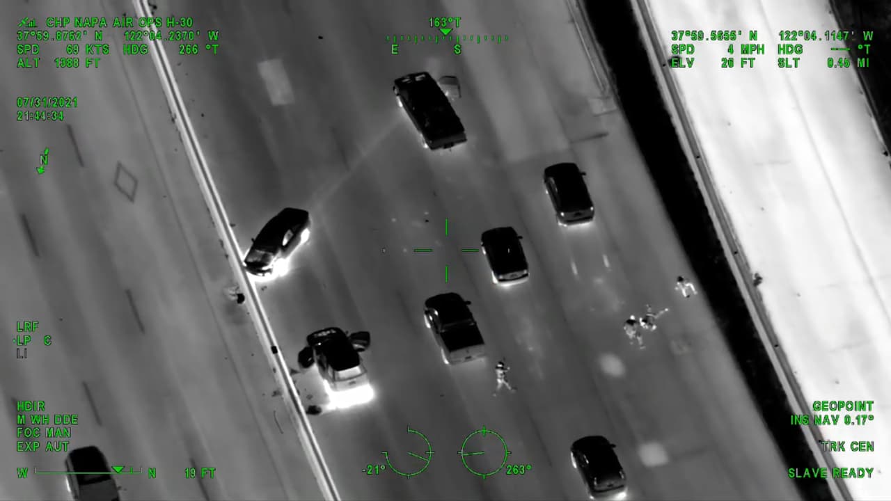 Una aeronave de la Patrulla de Caminos de California apoyó a oficiales de la Policía de Vallejo que perseguían un automóvil que circulaba a alta velocidad en calles y autopistas de la ciudad.