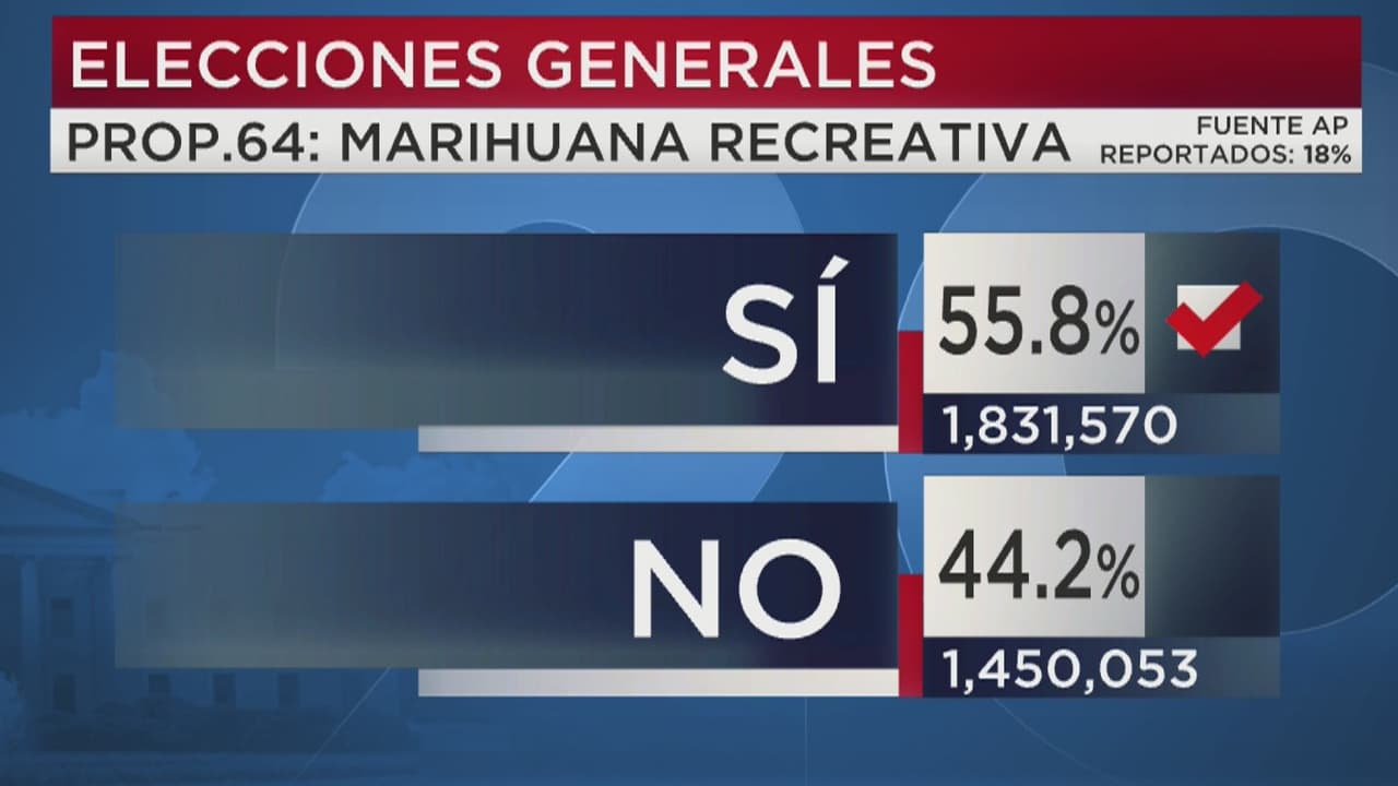 Con el 55,4% ganó la propuesta 64 sobre el consumo de la hierba. La demócrata Harris ganó la contienda frente a Loretta Sánchez.