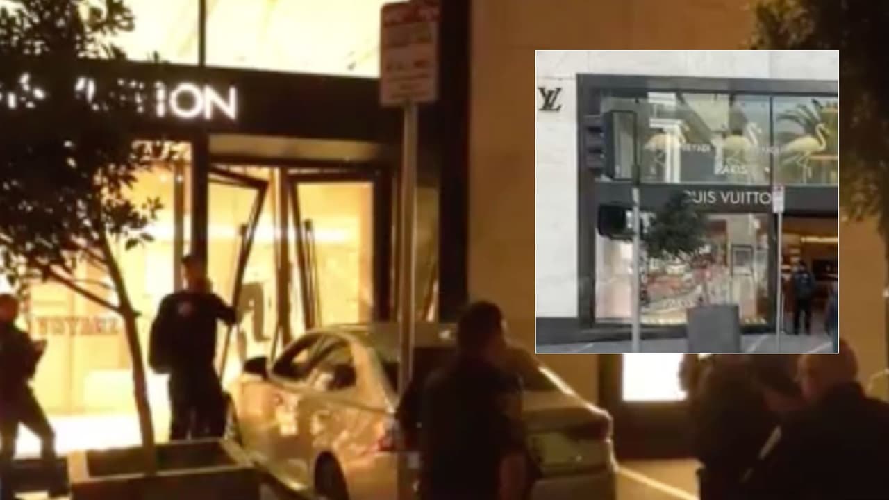 Impactan auto en tienda de Louis Vuitton en un intento de robo: opinan sobre aprobar Propuesta 36