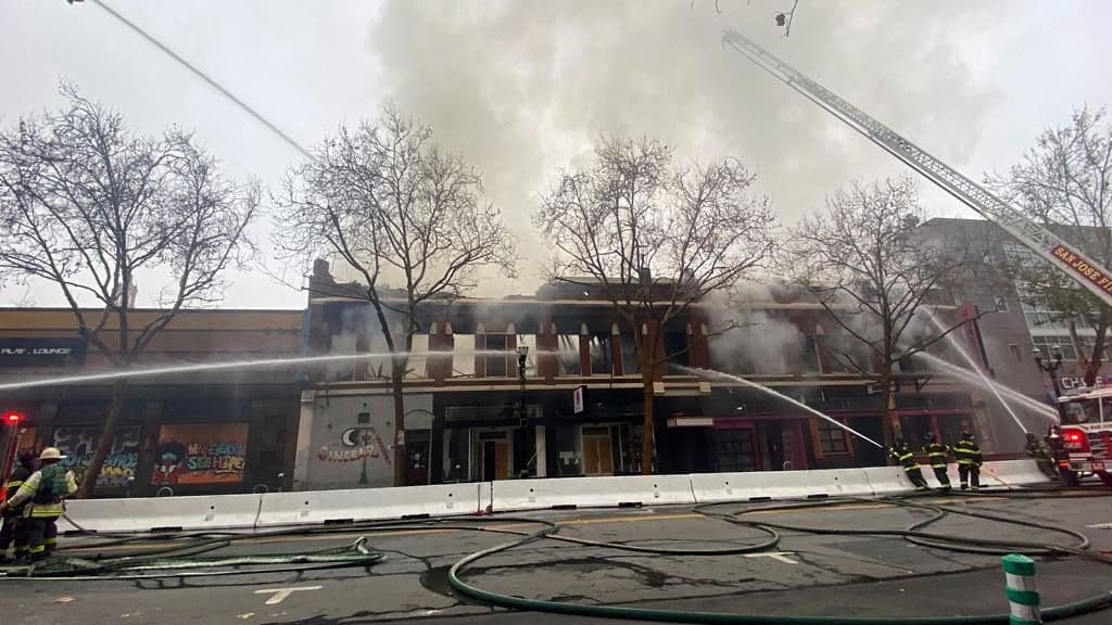 SAN JOSÉ, California. – Un incendio que rápidamente ascendió a las 4 alarmas arde este jueves en un edificio comercial del centro de San José, y hasta el momento ha causado daños en la estructura que alberga algunos de los bares y restaurantes más populares de la zona.