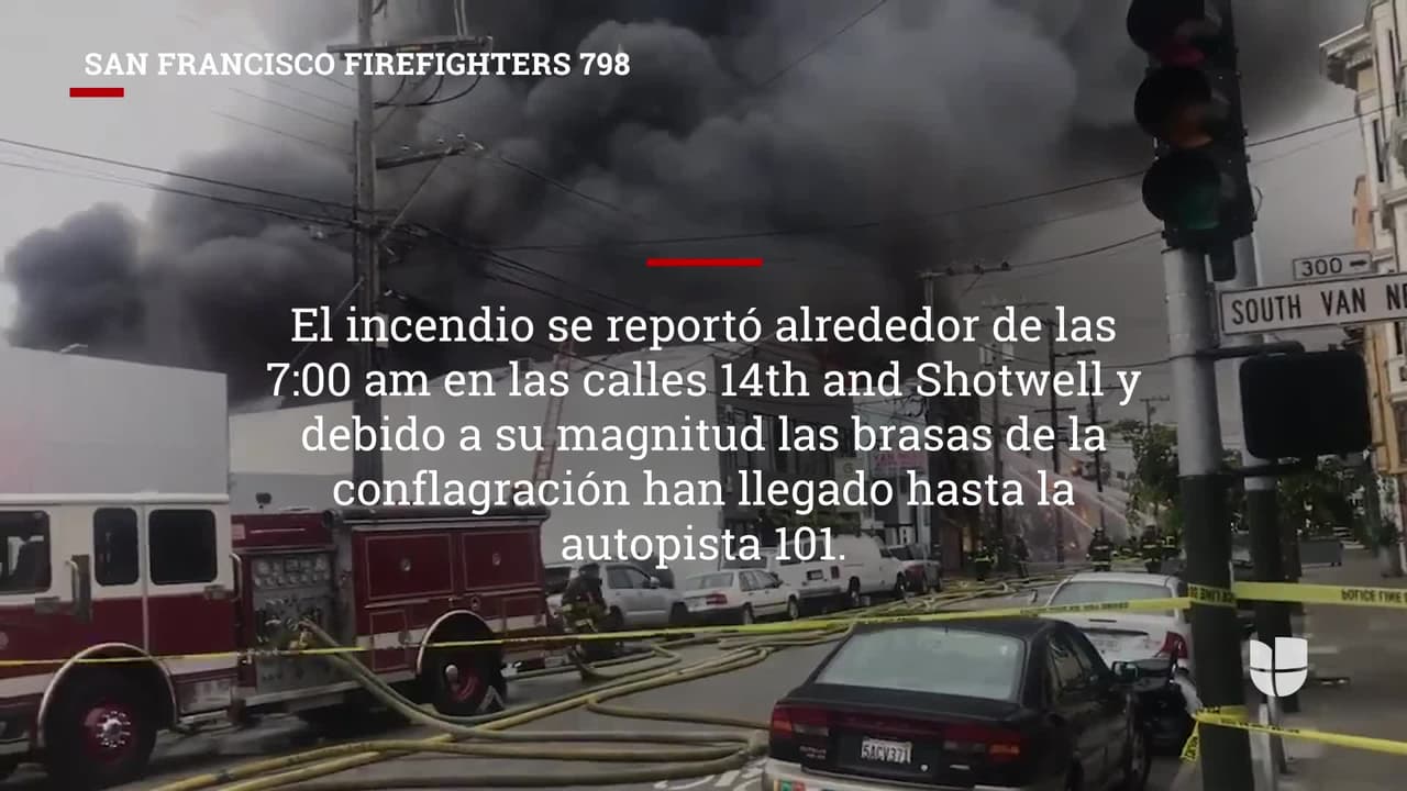 El incendio se reportó alrededor de las 7:00 am en las calles 14th and Shotwell y debido a su magnitud las brasas de la conflagración han llegado hasta la autopista 101.