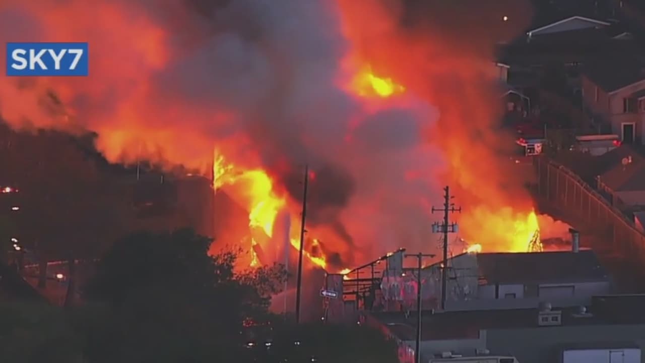 Incendio de dos alarmas en el este de Oakland destruye completamente un almacén