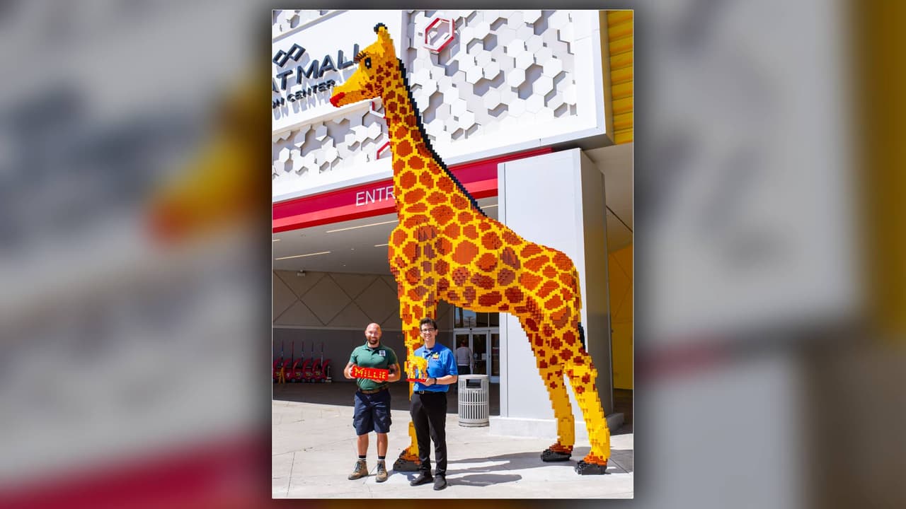 Sarah, una jirafa hembra del Zoológico de San Francisco, bautizó como "Millie" a la jirafa de 20 pies armada con 20,000 piezas de Lego que adornaran el centro de Legoland en el Great Mall de Milpitas.