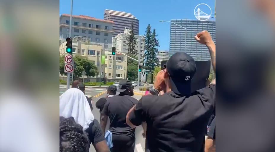 Jugadores de los vigentes campeones de la Conferencia del Oeste de la NBA, los Golden State Warriors, entre ellos Stephen Curry y el seleccionado mexicano Juan Toscano, marcharon este miércoles en contra de la brutalidad policiaca en Oakland, como parte de las protestas contra la muerte de George Floyd.