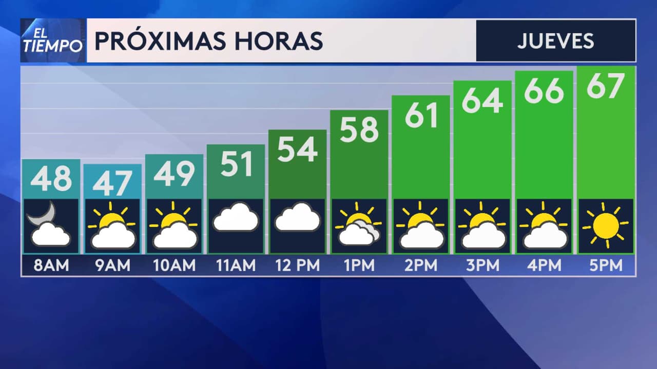 Las máximas para este jueves alcanzarán los 67 F. Conforme se acerca el fin de semana incrementan las probabilidades de lluvia.