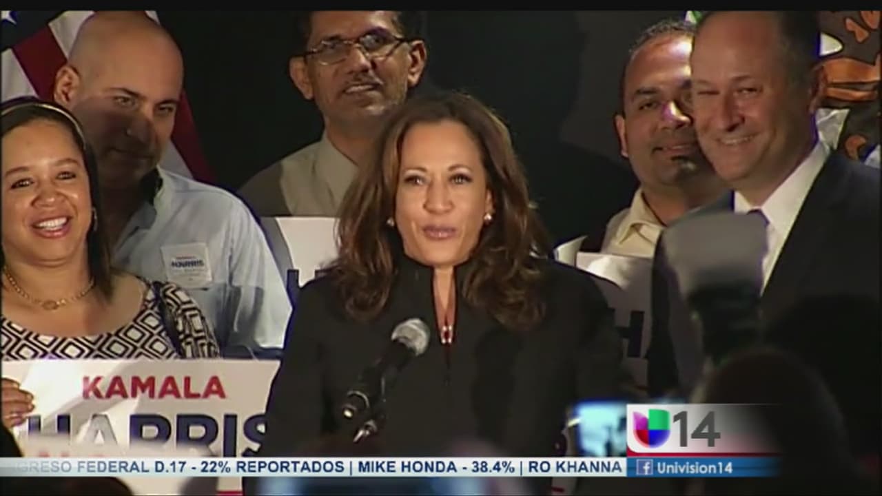 La fiscal general de California, Kamala Harris, dio un discurso a sus simpatizantes luego de que se diera a conocer que ella junto con la congresista Loretta Sánchez, encabezan la preferencia en votos para disputar una plaza en el Senado Federal.