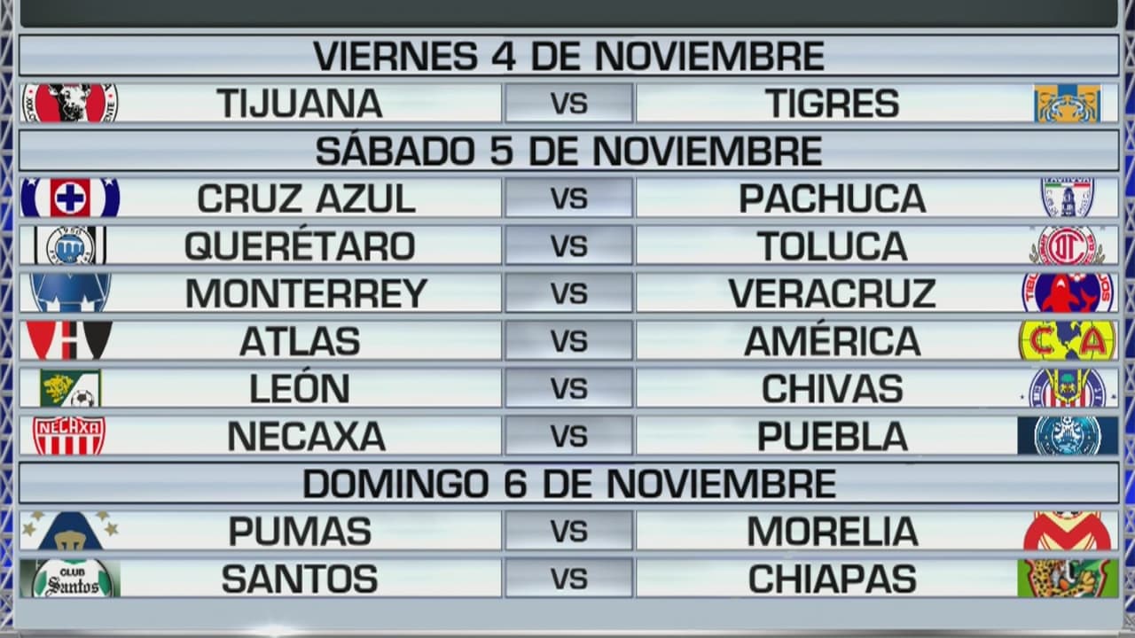 La fecha 16 de la Liga MX se cumple este fin de semana del 4, 5 y 6 de noviembre