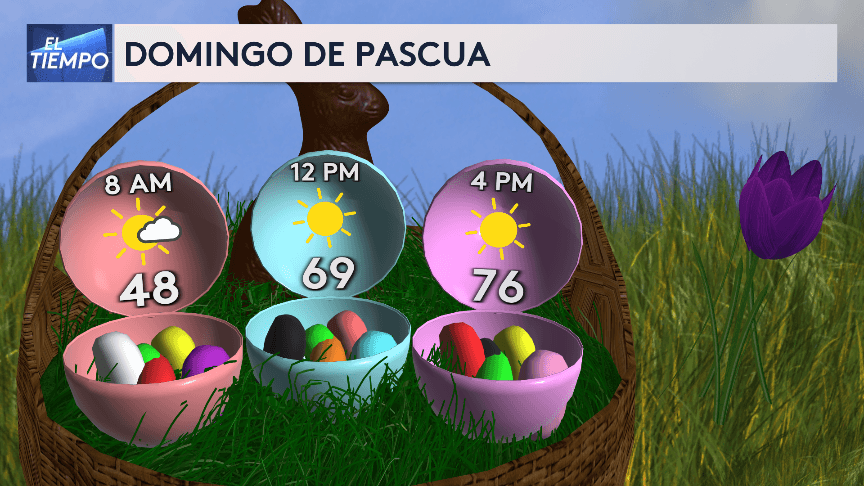 Este sábado quedarán algunos nublados con posibles lloviznas muy ocasionales antes del mediodía. Los nublados irán disminuyendo desde mediados de la tarde. Experimentaremos un ligero ascenso en las temperaturas durante la tarde con máximas en San Francisco de 63 F, Oakland 64 F, Santa Rosa 66 F y 70 F hacia San José. Para el Domingo de Pascua tendremos sol y algunas nubes. Este día será el más cálido de la semana. San José llegará a los 76 F, Oakland a los 70 F y San Francisco quedará en los 65 F.