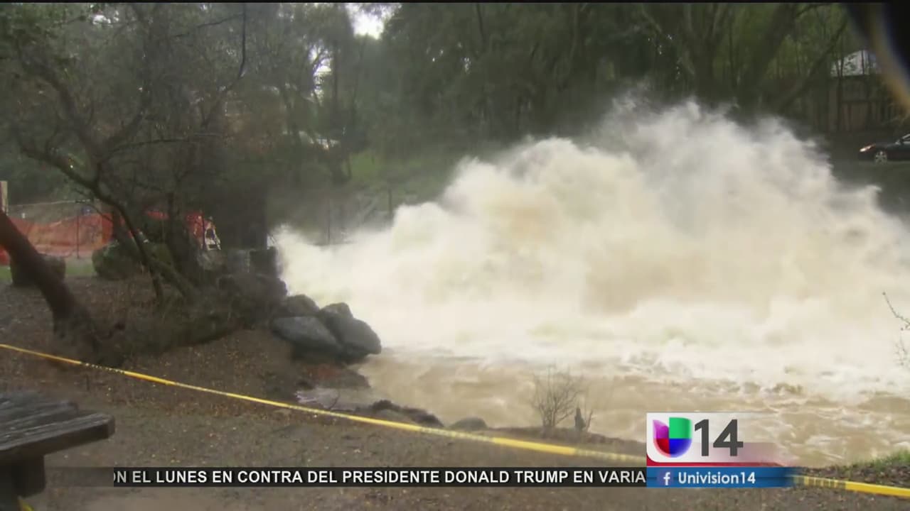 El reservorio Anderson superó su capacidad y empezó a desbordarse provocando una cascada en un parque del condado donde la represa se junta con Coyote Creek.