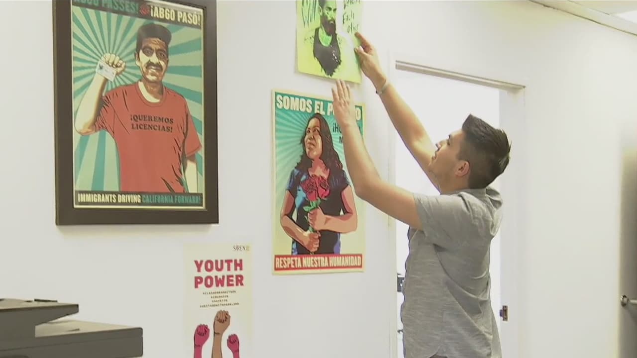 Activistas y estudiantes trabajan en la creación de pancartas para encabezar una marcha proinmigrante con motivo del 1 de mayo, día que a nivel mundial se conmemora el Día del Trabajo.