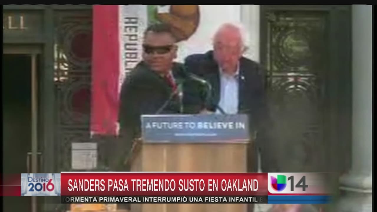 Mientras se dirigía a sus miles de seguidores en Oakland, el pre candidato demócrata Bernie Sanders fue atacado por un objeto que le lanzaron desde la multitud. Las personas involucradas ya fueron arrestadas.