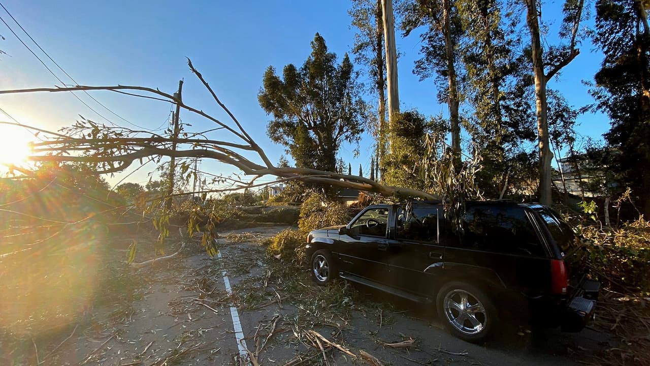 En varias regiones del Área de la Bahía los vientos alcanzaron velocidad de huracán, provocando a su paso cables de tendido eléctrico caídos y más de una decena de árboles derribados.