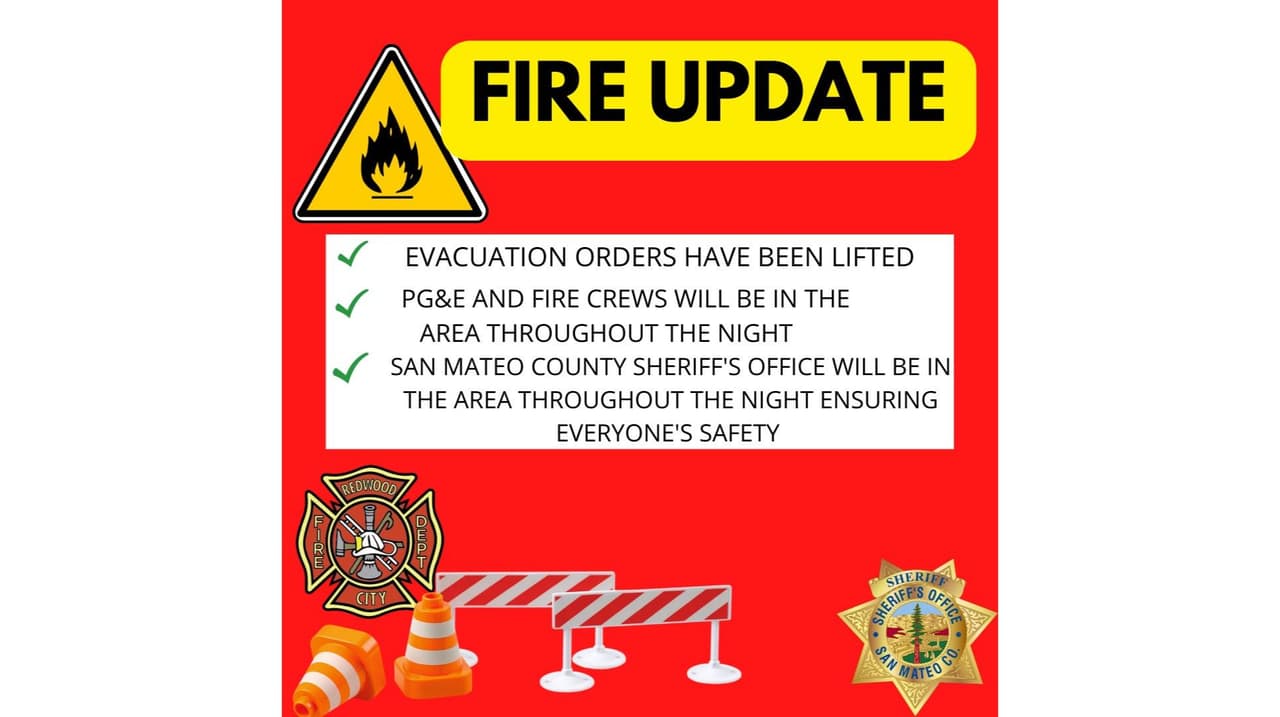 Todas las órdenes de evacuación se han levantado y se están degradando a advertencias en la zona del incendio en las colinas de Edgewood Park en el condado de San Mateo, dijo Cal Fire.