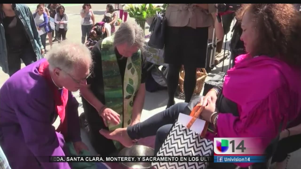 Líderes religiosos y activistas lavaron los pies de inmigrantes indocumentados que han sido víctimas de crímenes en el área de la bahía con motivo del Jueves Santo.