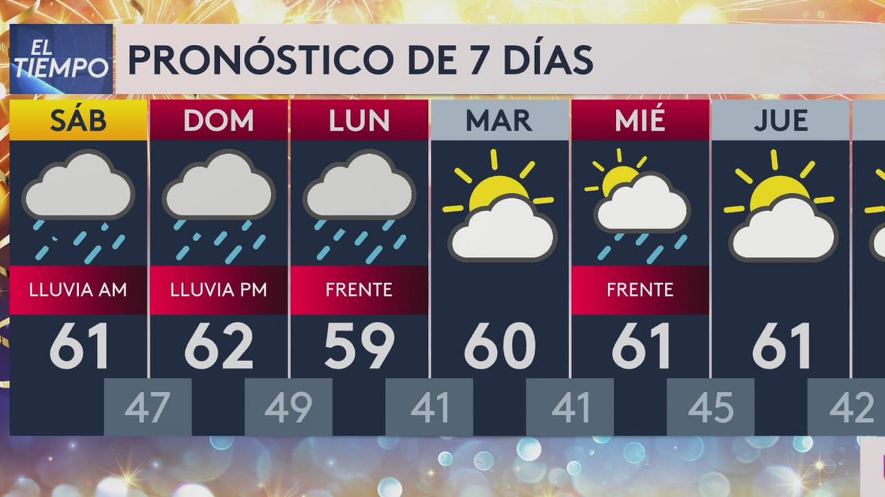 Espera un fin de semana con precipitaciones ligeras y temperaturas alrededor de los 62 grados Fahrenheit.
