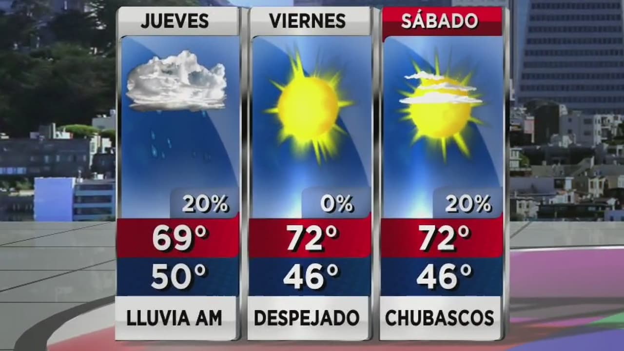 Se espera que el incremento en las temperaturas comience después de que pase la lluvia. Para San José, las temperaturas altas que se han pronosticado aumentarán de 69 grados el jueves a 81 grados el lunes.