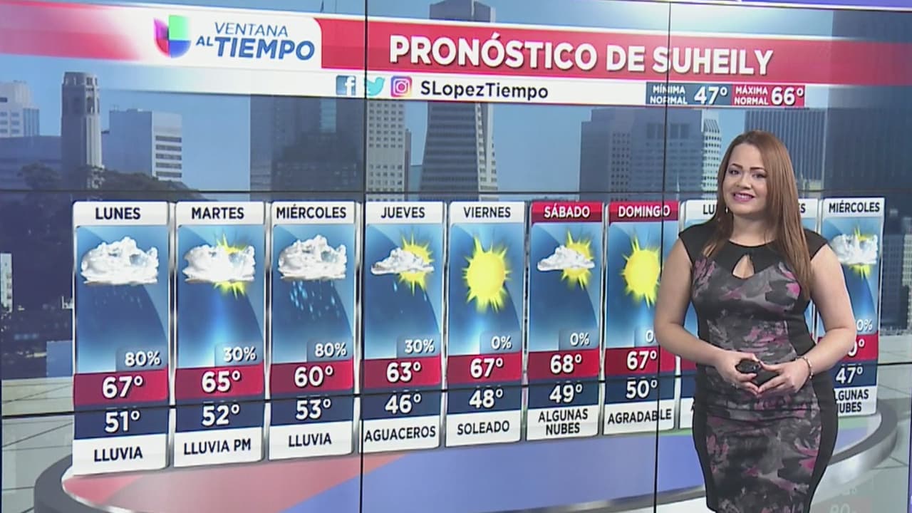 Además de condiciones nubladas, se espera que este lunes haya unas temperaturas de 67 grados, con condiciones lluviosas.