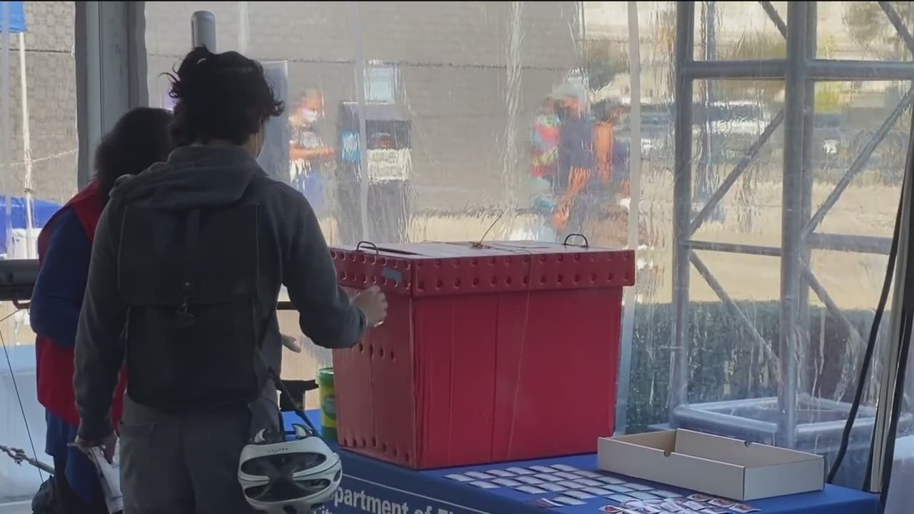 Este centro ubicado en el exterior del ayuntamiento de San Francisco recibe a las personas que buscan registrarse o entregar su boleta de elección, con medidas de protección y limpieza.