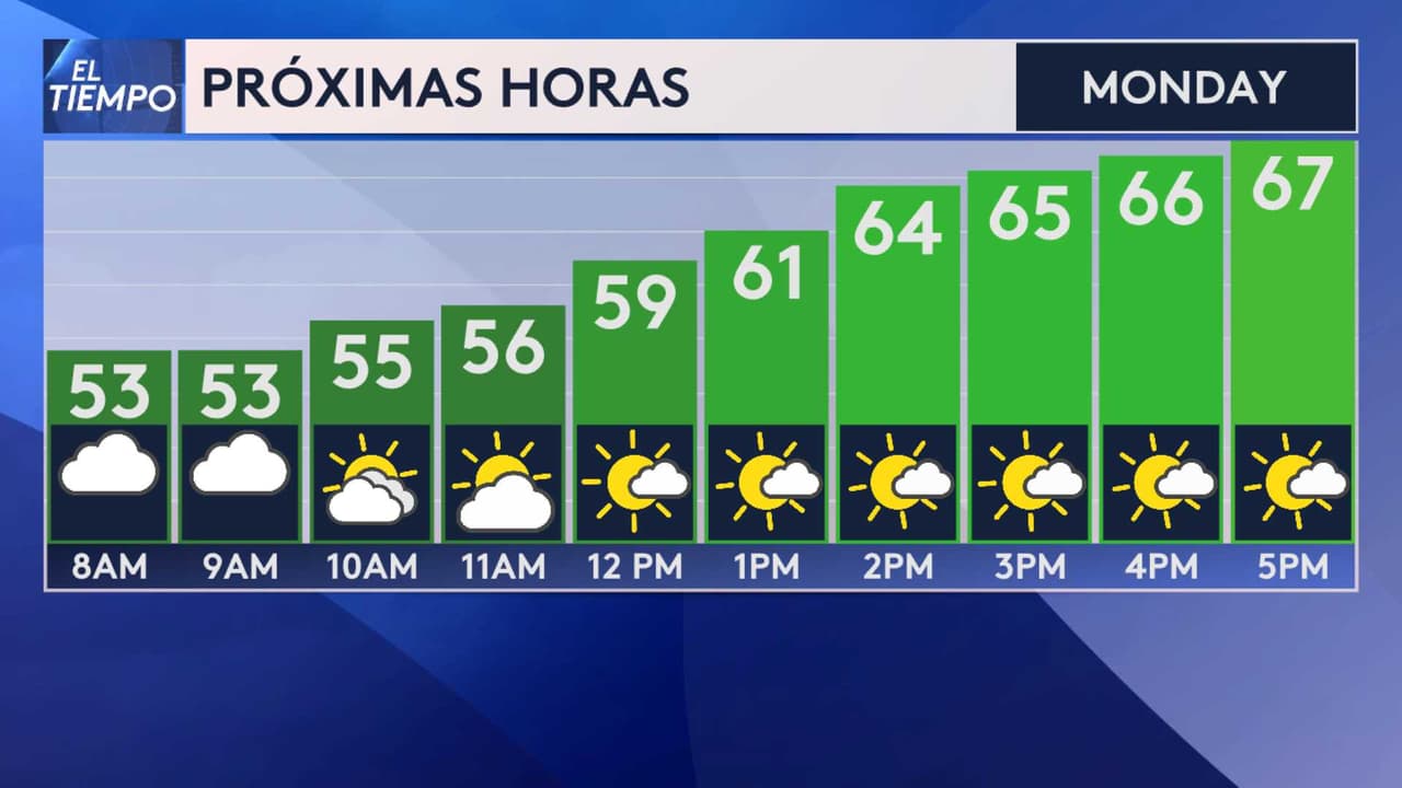 Lunes parcialmente nublado con una baja en las temperaturas y máximas debajo de los 67º F.