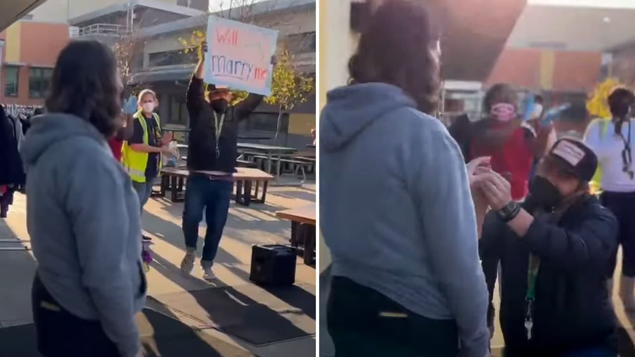 Maestro le pide matrimonio a profesora de Oakland enfrente de toda la escuela