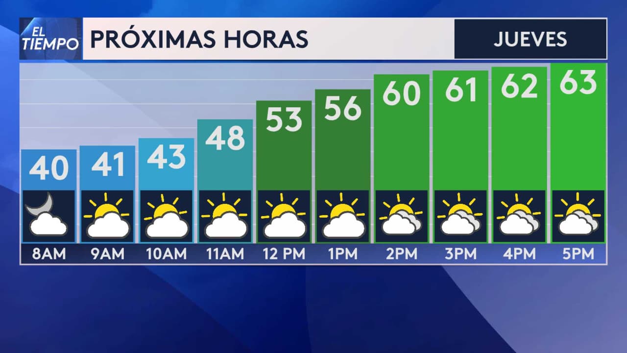 Mañana de jueves bastante fría y temperaturas máximas alrededor de los 60 F para el resto del día