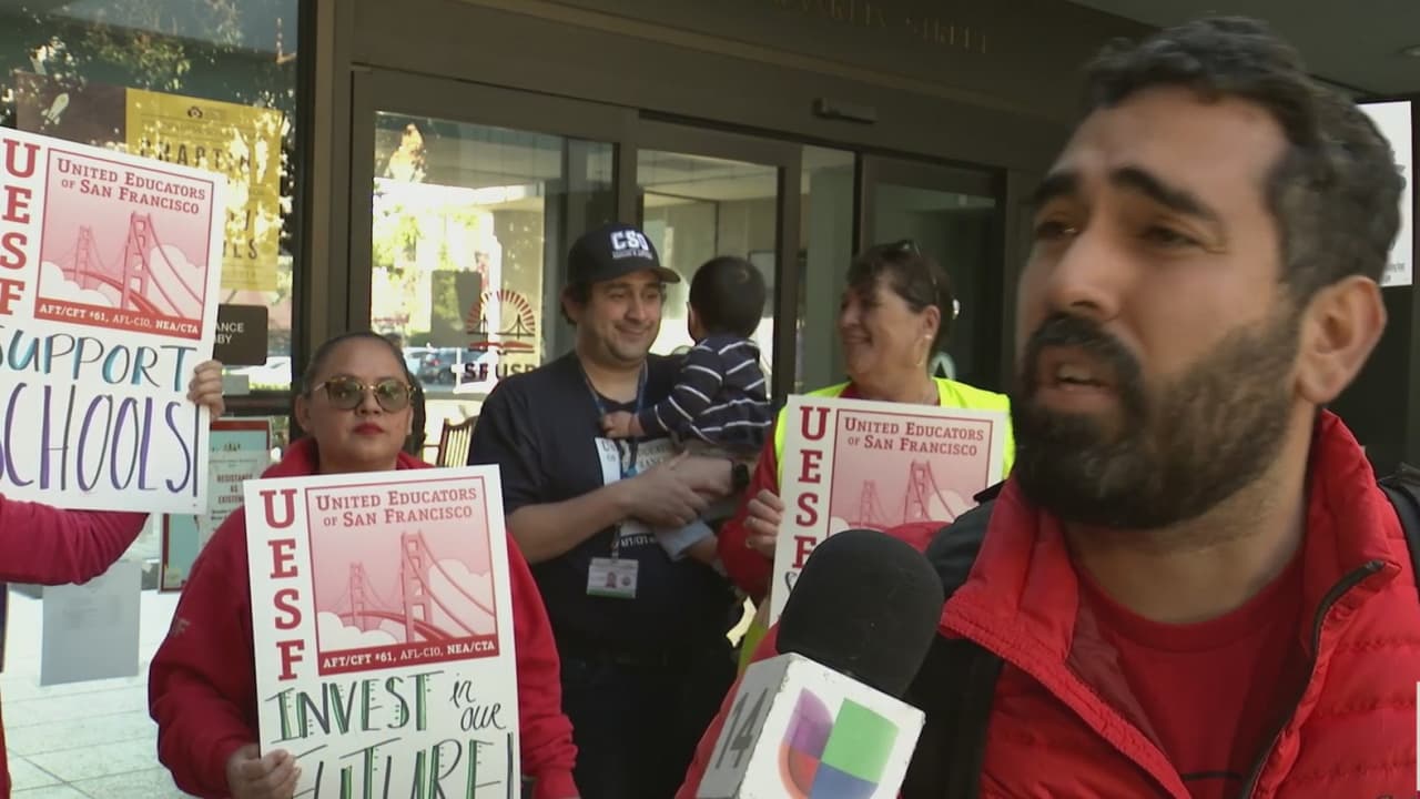 Maestros y padres de familia protestaron en San Francisco contra posibles recortes anunciados por el Distrito Escolar Unificado de la ciudad.