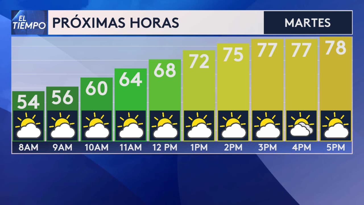 Martes con ligera nubosidad y temperaturas que se mantendrán debajo de los 80 F
