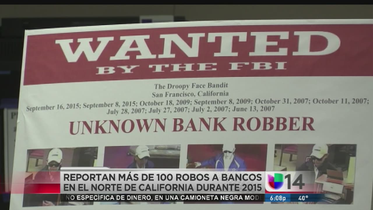 El FBI reportó que durante 2015 se registraron 102 asaltos a bancos en el área del norte de California y describió a los 6 sospechosos más buscados.