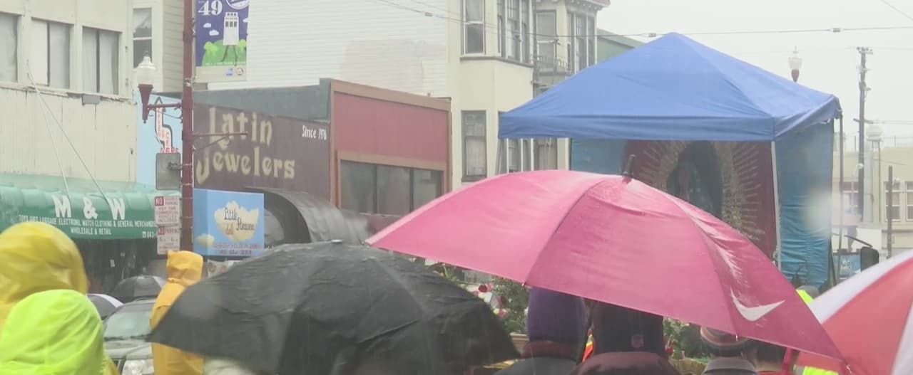 Miles de personas de San Francisco caminaron en medio de la lluvia festejando a la virgen de Guadalupe