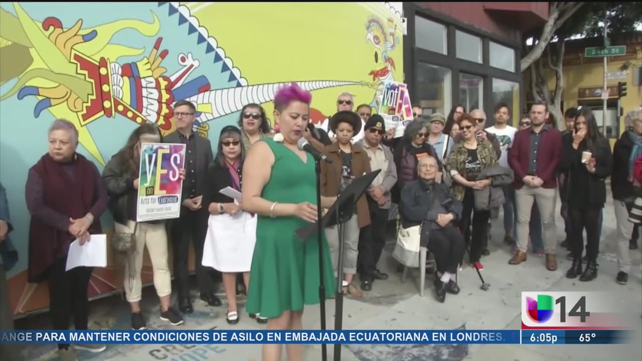 Artistas y activistas salieron a pedir un alto al desalojo de la “Galería la raza”, negocio que lleva más de 46 años en la propiedad, según información la familia dueña del inmueble aumentó la renta de 3,000 a más de 6,000 dólares o de lo contrario les dio tres días para marcharse.