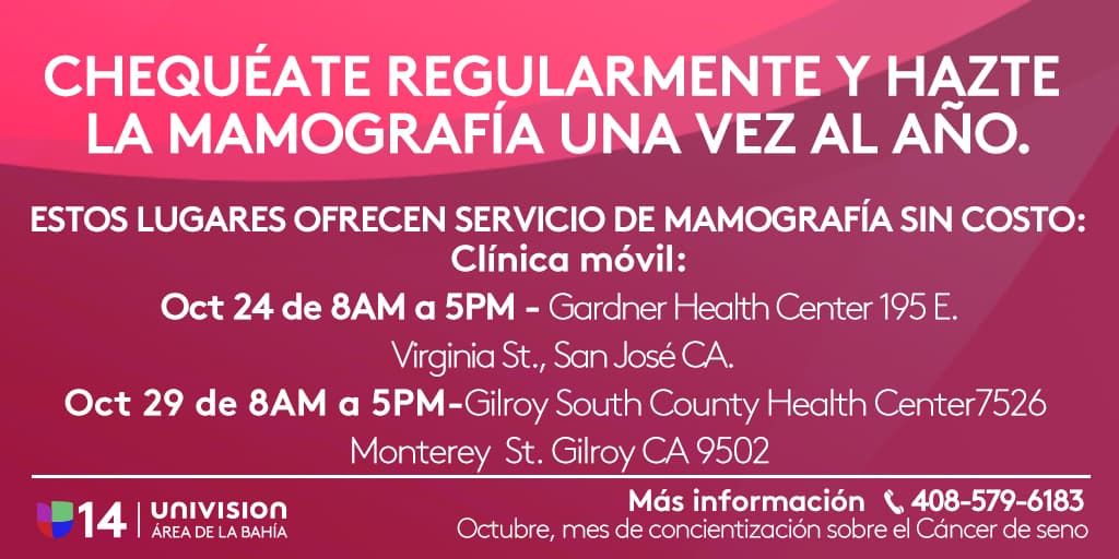 Es importante chequearse regularmente para prevenir y detectar esta enfermedad tan común. En el Área de la Bahía, los siguientes lugares ofrecen el servicio de mamografía sin costo alguno: