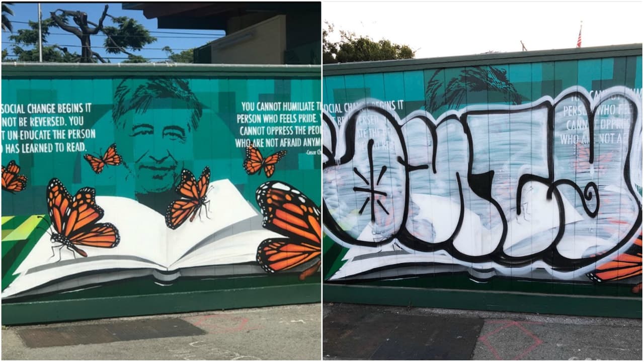 Padres de familia indignados por mural de César Chávez vandalizado en escuela hispana de San José
