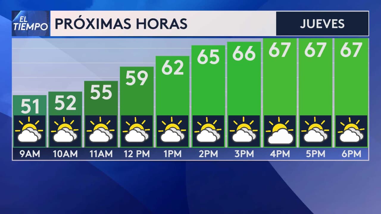 Para este jueves se mantienen los cielos nublados y temperaturas frescas por debajo de los 70º F