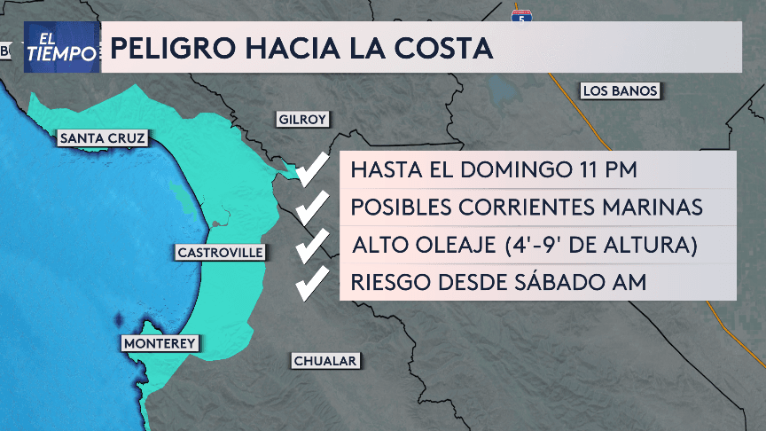 El fin de semana ha llegado y muchos planean ir hacia la playa. Tenga mucho cuidado porque hay posibilidad de corrientes marinas y además habrá alto oleaje debido a los remanentes de lo que hoy es el Huracán Jova. Este huracán no impactará directamente nuestra región, pero espere mayor humedad para los siguientes días. Hay pequeña posibilidad de lluvias principalmente hacia el sur de California, así que, por los momentos, nuestra Área de la Bahía permanece con un pronóstico de condiciones estables y un panorama soleado este fin de semana hacia la nueva semana laboral. Temperaturas en el rango de los mediados 80°F hacia las ciudades del interior.