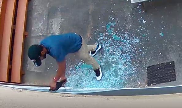 Luego se puede ver como usa una herramienta especial para romper el vidrio de una puerta corrediza trasera. Una vez que el ladrón entró a la casa, una persona de la tercera edad que estaba adentro en ese momento se enfrentó al intruso y lo obligó a huir.