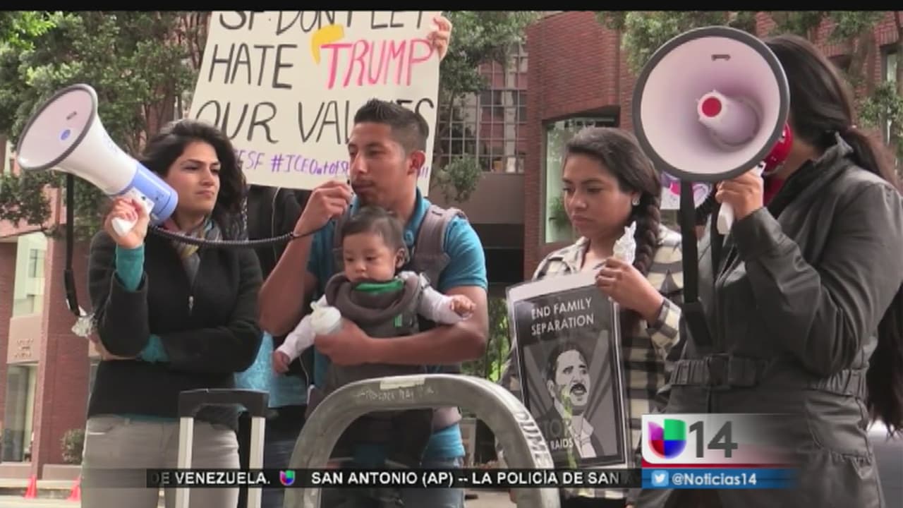 Con pancartas afuera del centro de detención de ICE en San Francisco un grupo de activistas le pidió a la asamblea estatal que apruebe una propuesta conocida como el acta de la dignidad y no de la detención.