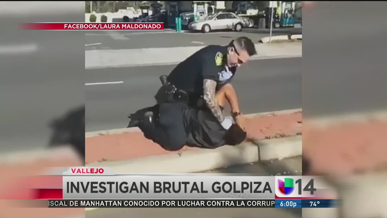 Un video muestra el momento en que un policía golpea brutalmente a un hombre, a pesar de que no estaba armando y ya lo tenía sometido, por lo que autoridades de Vallejo investigan el caso.