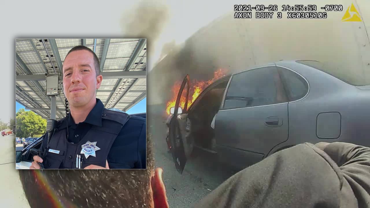 Un oficial hispano del Departamento de Policía de San José rescató un hombre que se encontraba en un auto en llamas. Mira los detalles.