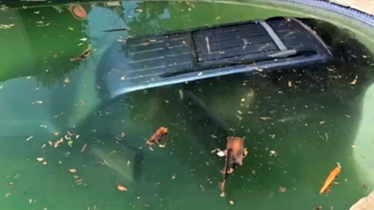 Policía rescata a conductor que chocó y terminó sumergido en una piscina