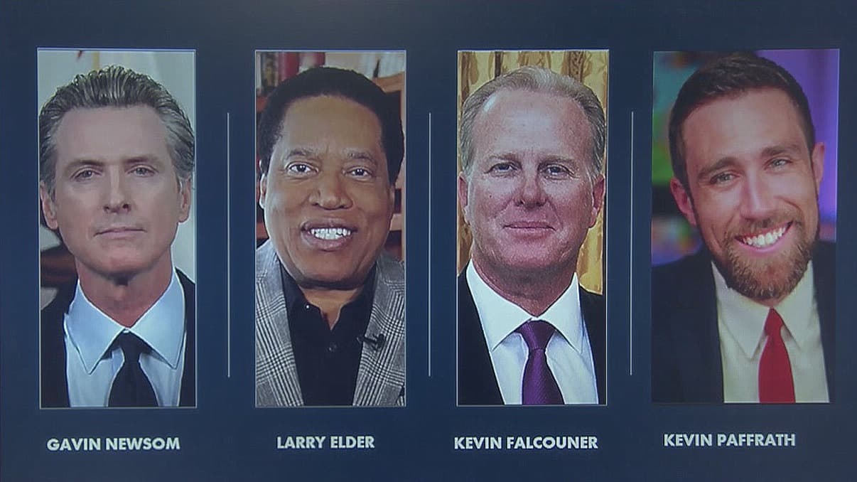 Hay 46 candidatos para reemplazar a Newsom, aunque Doug Ose, ex congresista, se retiró por razones de salud después de que fue imprimida la papeleta. Hay 24 candidatos republicanos entre los cuales, además de Elder, están el ex alcalde de San Diego Kevin Faulconer; el empresario John Cox (a quien Newsom derrotó en el 2018); la estrella de reality TV y ex atleta olímpico Caitlyn Jenner y el legislador local Kevin Kiley.
