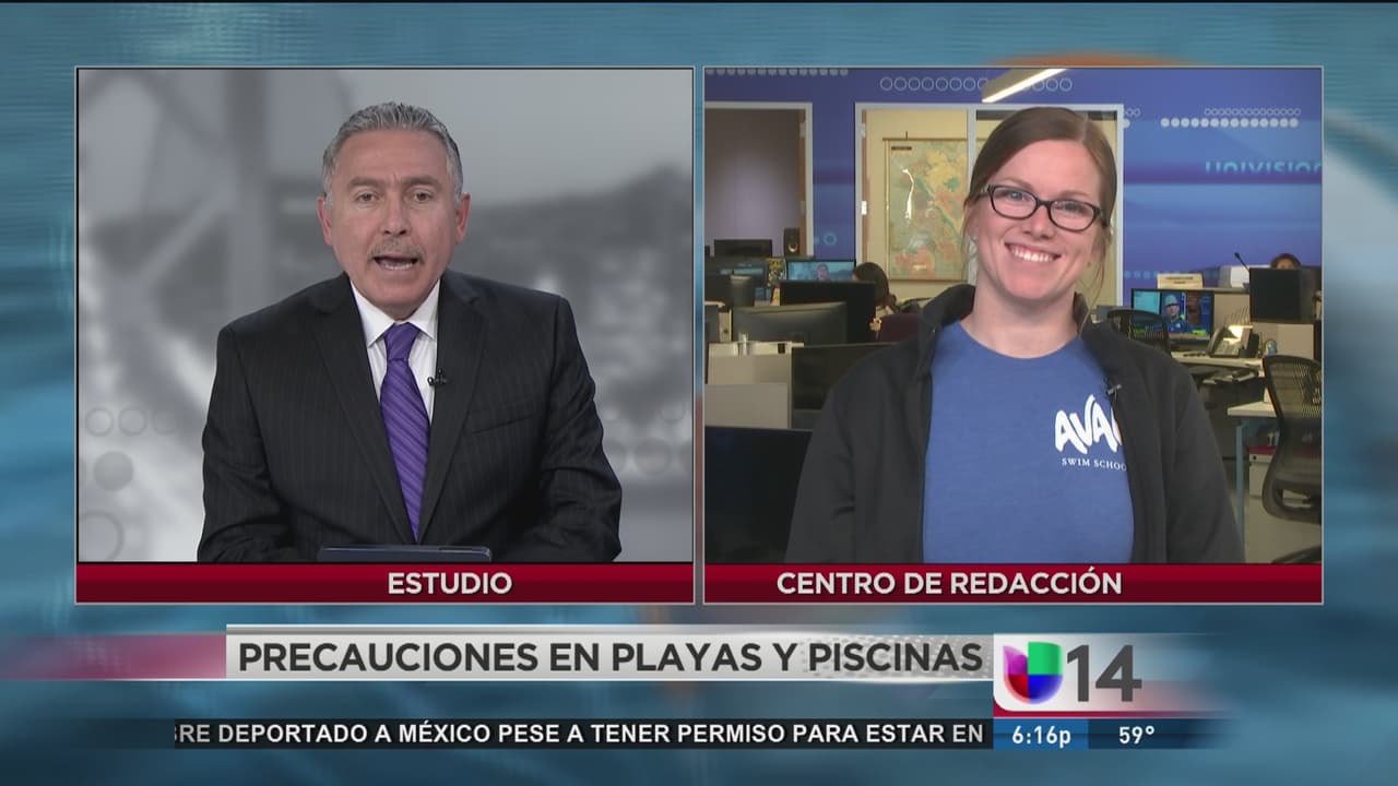 Una instructora de natación explica las precauciones que se deben tomar, sobre todo con los menores, en albercas y playas.