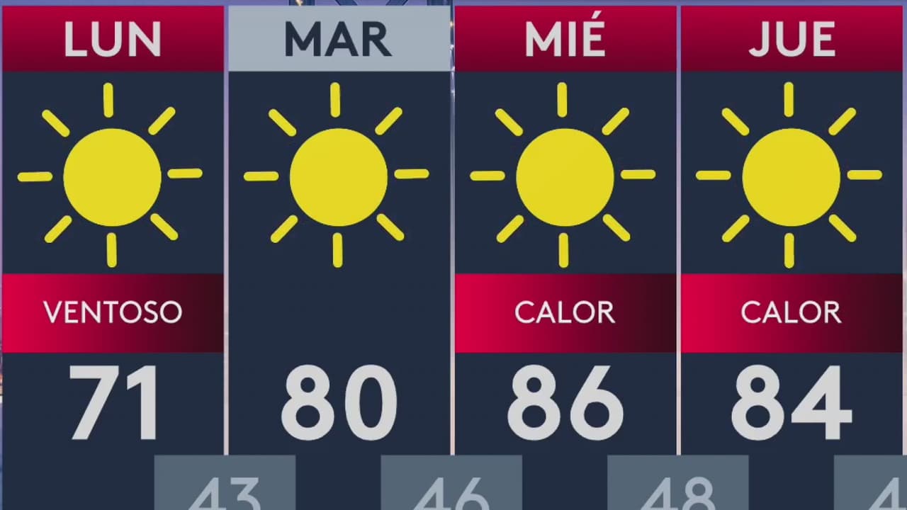 Durante este inicio de semana predominarán las condiciones despejadas, con máximas de 79 grados y algunos vientos.