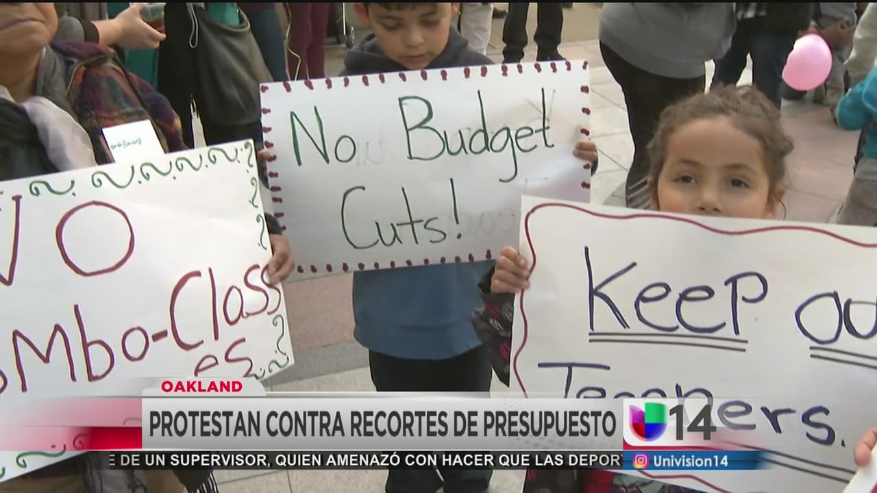Protesta por recortes al presupuesto en escuelas de Oakland