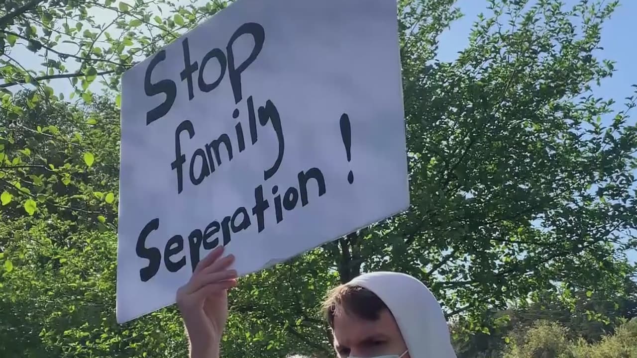 Realizan una protesta en contra de que menores migrantes sean detenidos en la base federal Moffett, en Mountain View