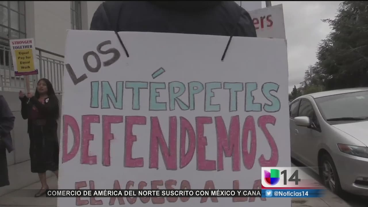 En una protesta y paro, los intérpretes que trabajaan en cortes y cárceles, exigieron un aumento de sueldo.
