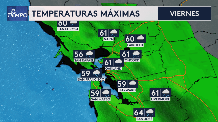 Las temperaturas se mantendrán entre los 56 grados hacia San Rafael y los 59 en San Francisco.