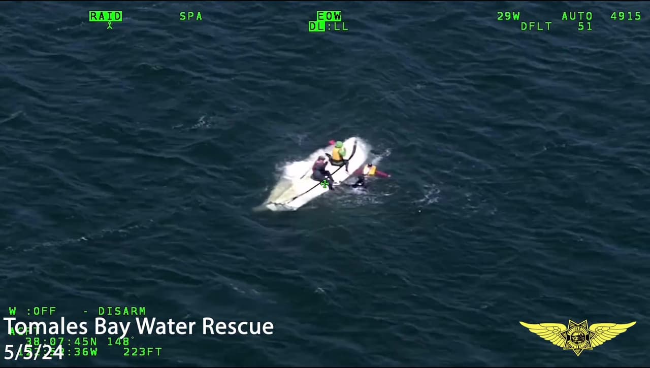 Cuatro personas fueron rescatadas después de que su barco volcara en la Bahía de Tomales. El Helicóptero de rescate Henry-1 del Sheriff del Condado de Sonoma realizó el rescate exitoso.