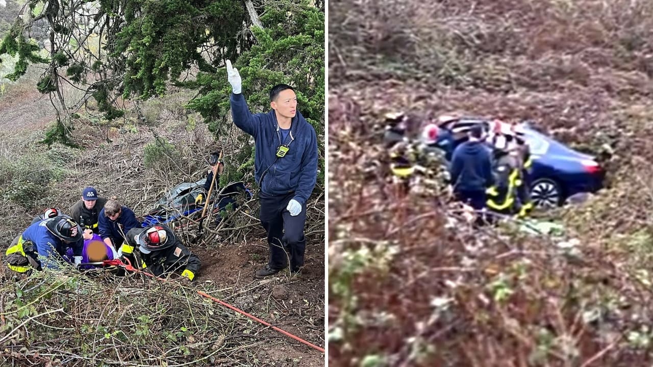 Dos personas fueron rescatadas después de que su auto cayera aproximadamente 100 pies por una pendiente en San Francisco, California. El accidente ocurrió en el bulevar O'Shaughnessy y los bomberos de la ciudad fueron los encargados de llevar a cabo el rescate de los ocupantes del vehículo.
